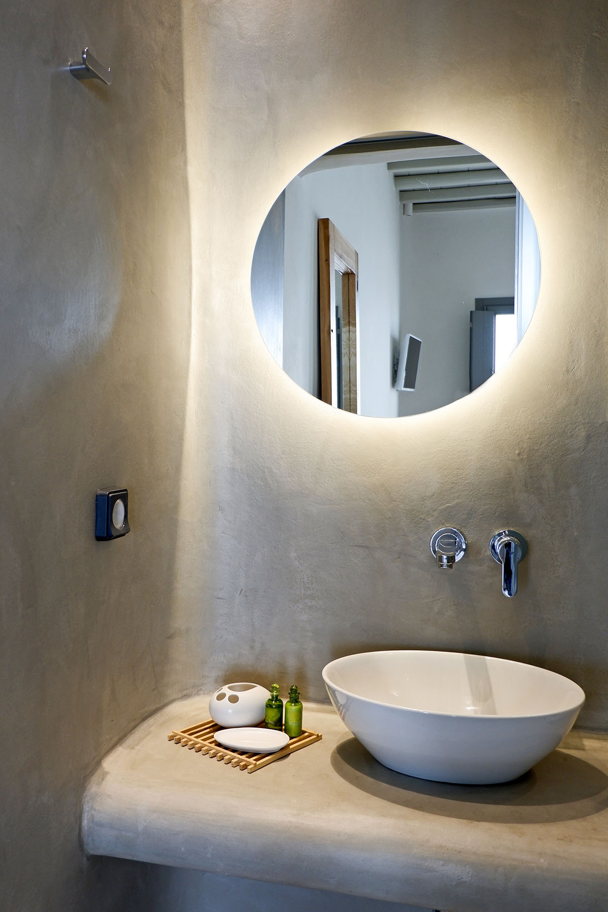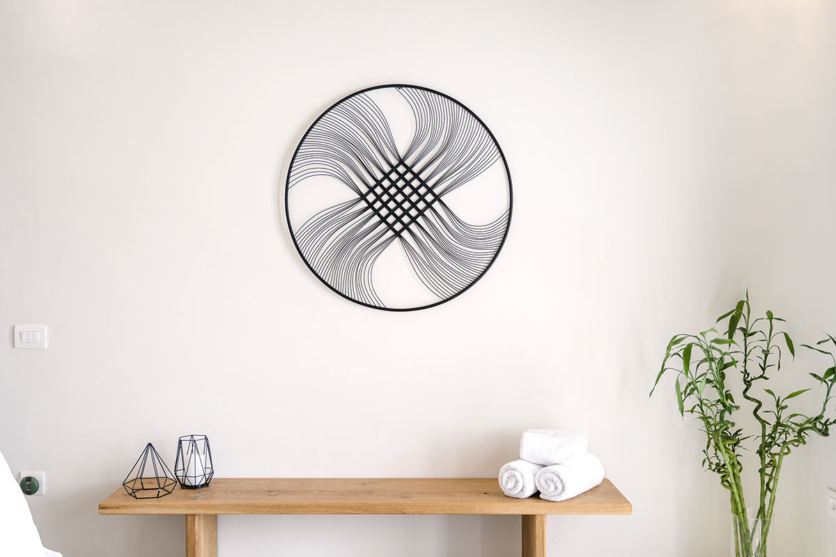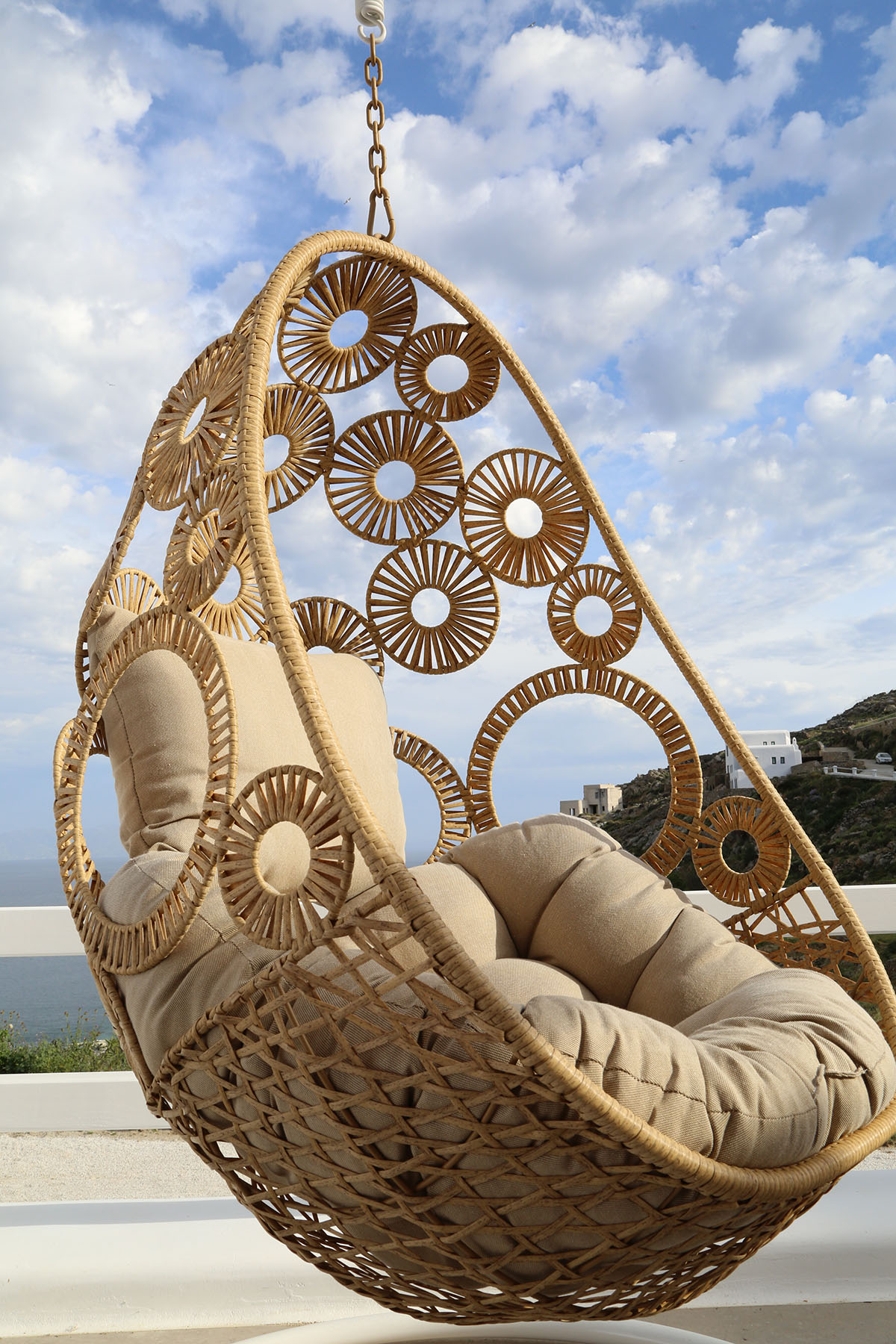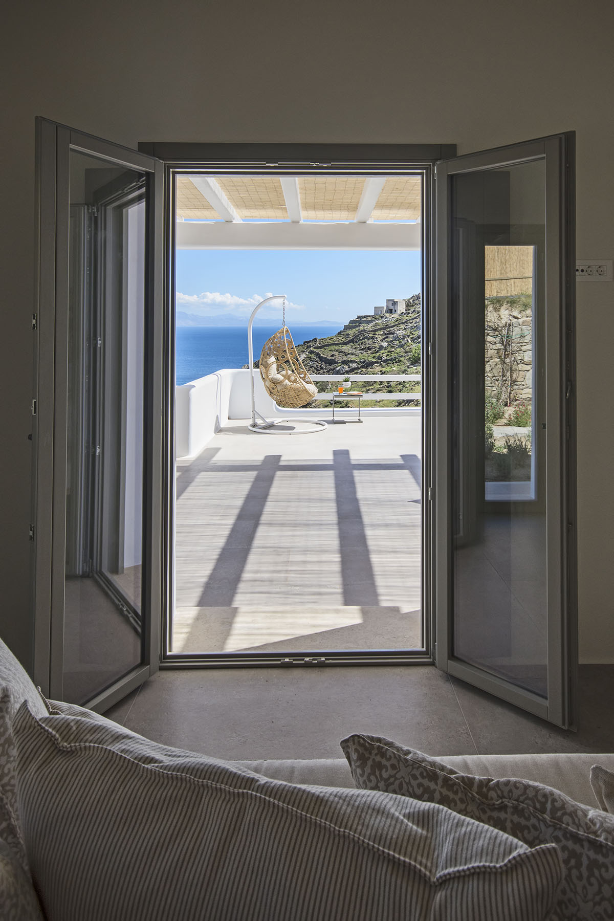 Designed in the timeless Cycladic style, the villa features minimal yet elegant decor that complements its serene surroundings. Inside, the cozy bedroom and thoughtfully arranged living spaces create a warm and welcoming atmosphere.